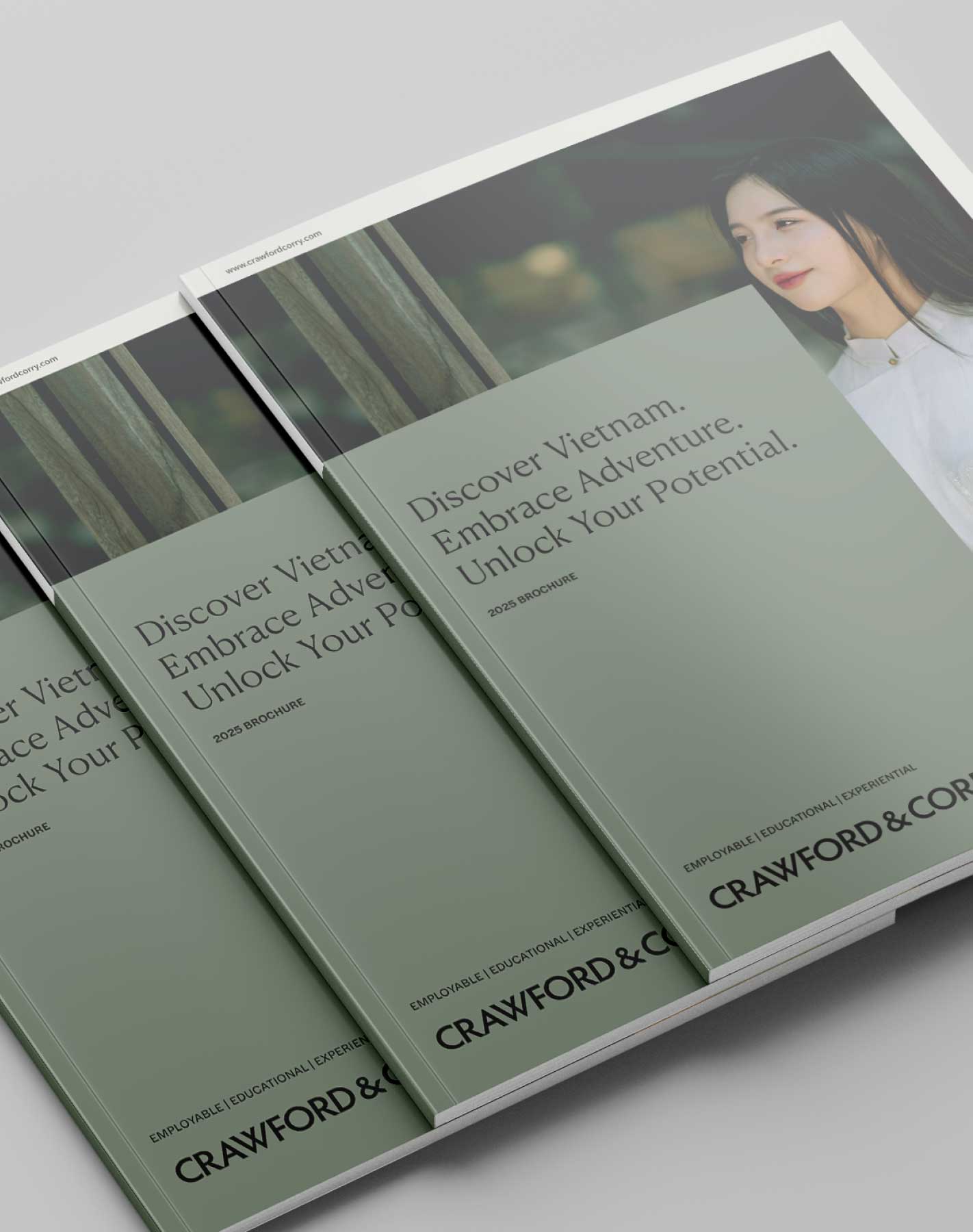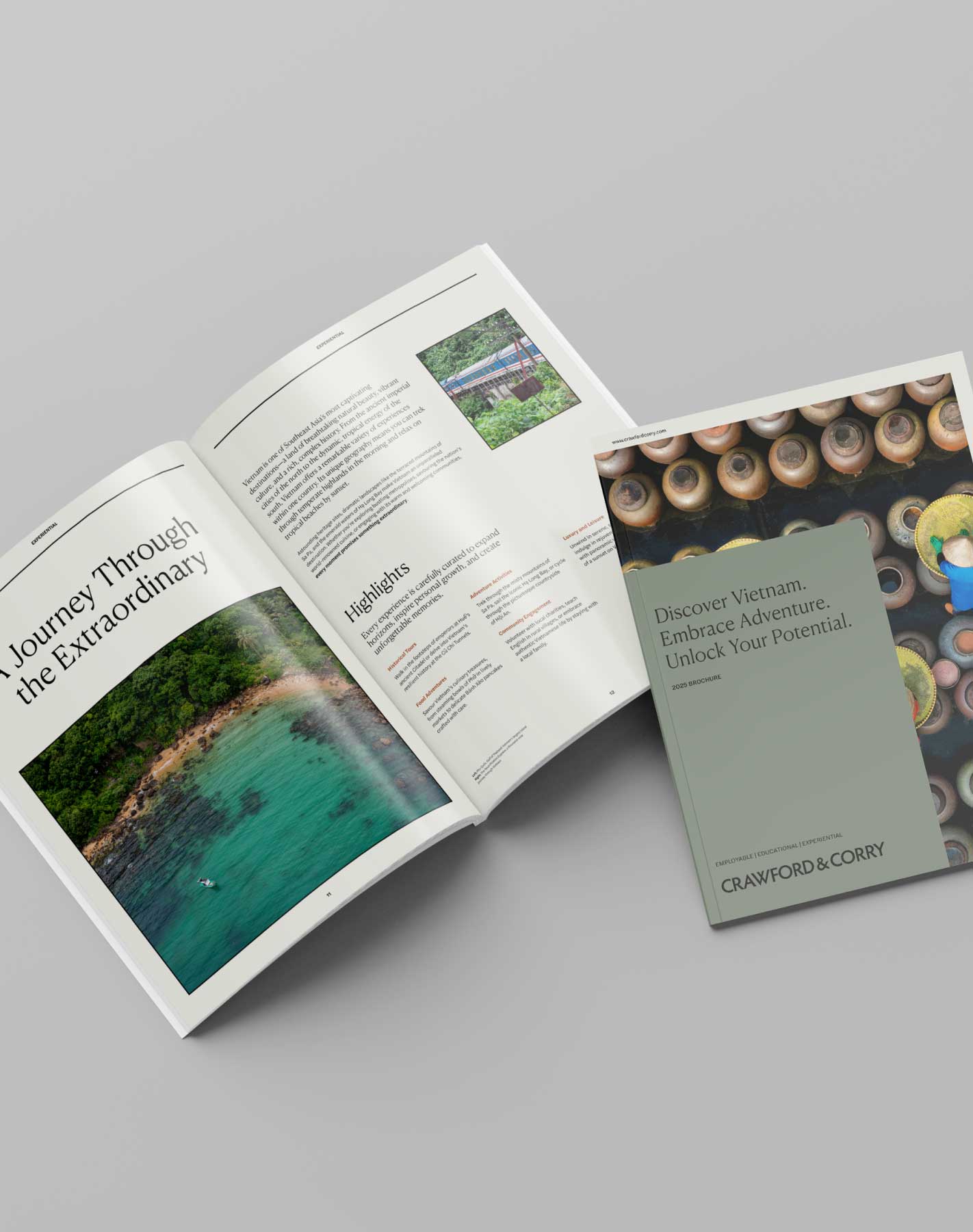 Strategic branding for an extraordinary travel experience. Crawford & Corry provides transformative travel experiences in Vietnam, blending professional placements with cultural immersion. They needed a refined, aspirational brand identity to reflect their premium, tailored approach.